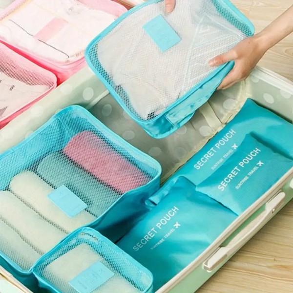 6 x Borse Organizzatrici da Viaggio (3 borse in rete con zip + 3 pochette con zip)