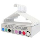 Confezione di grucce in plastica, ciascuna delle quali misura 16,14 x 0,23 x 9,25 pollici.