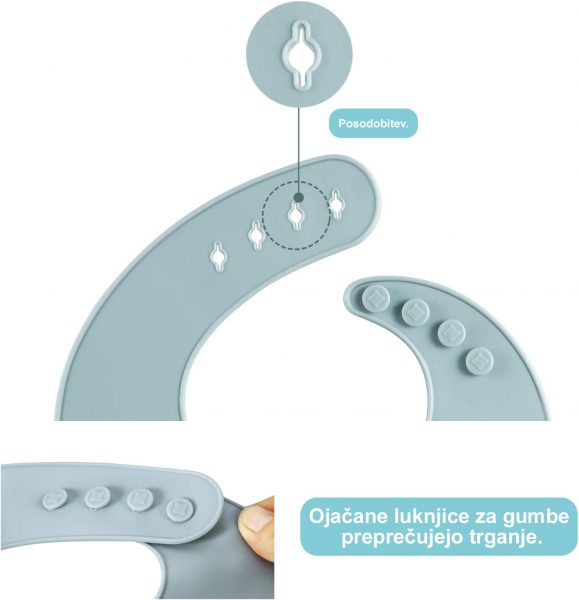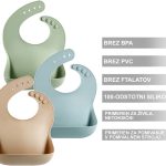 Silicone estremamente morbido per il massimo comfort durante l’uso. La forma esterna leggermente curva si adatta perfettamente alla naturale curvatura del corpo del bambino. Le tasche profonde rinforzate rimangono aperte e catturano la maggior parte del cibo e dei liquidi caduti. Il silicone aggiuntivo garantisce che la tasca inferiore rimanga sempre aperta.