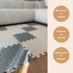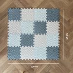 Piastrelle in schiuma da 30 × 30 cm. Il set comprende 16 pezzi (inclusi 2 pezzi extra gratuiti). La superficie totale del tappeto copre 2,5 m². Può essere utilizzato in diverse stanze e anche all’aperto.