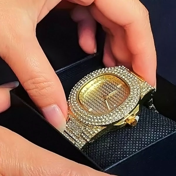 Migliaia di cristalli scintillanti trasformano questo orologio in un pezzo da novanta. Non è solo un orologio: è un’audace dichiarazione di lusso ed eleganza.