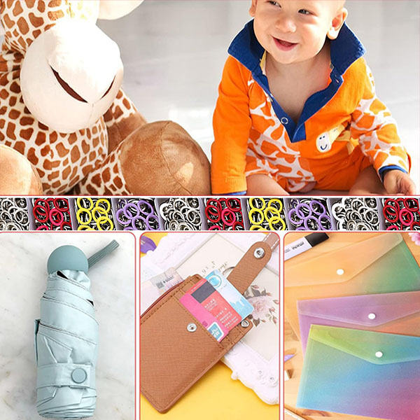Questo kit comprende tutto il necessario: una pinza resistente, 80 bottoni automatici in metallo di alta qualità in colori assortiti e una custodia compatta.