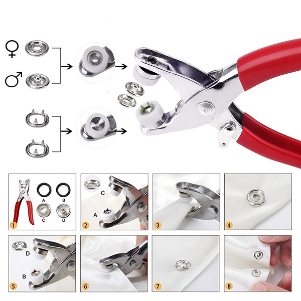 Le pinze sono resistenti anche in caso di uso intenso. Abbinate a bottoni a pressione resistenti alla ruggine, questo kit funziona perfettamente su tessuti come cotone, denim, tela, poliestere e persino pelle.