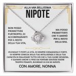 Biglietto esclusivo con messaggio: Non posso promettere purtroppo, di accompagnarti per il resto della tua vita, ma posso prometterti che ti amerò per il resto della mia. Ovunque ti porti la vita, sii sempre coraggiosa e forte. Sii sempre conscia della tua intelligenza e della tua capacità di realizzare tutto ciò che il tuo cuore desidera. E quando anche il peso da portare dovesse essere troppo pesante, ricordati di chi sei nipote.