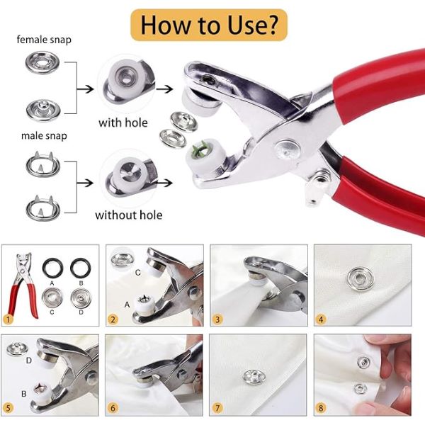 Un must per ogni casalinga, amanti della moda, genitore e creatrici! Con un set contenente pinze professionali e un’ampia selezione di bottoni, può riparare, trasformare e creare abiti unici! Inoltre, il set può essere utilizzato anche per altri progetti del fai-da-te!