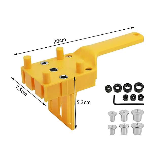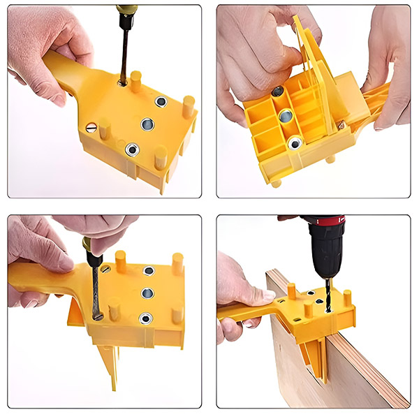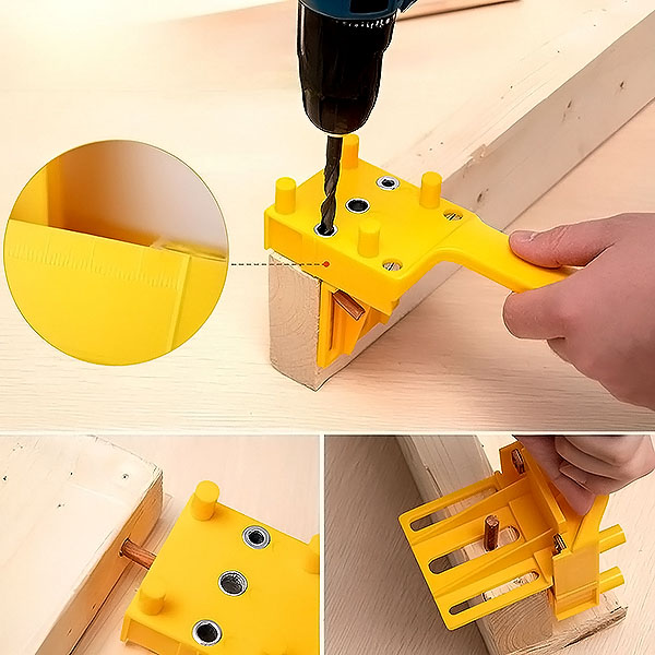Progettato per la velocità e la precisione, il dispositivo è dotato di limitatori regolabili e di una scala centimetrica/millimetrica per facilitare l’impostazione della profondità. Che si tratti di forare connessioni angolari, giunti a T o a L, questo strumento consente di risparmiare tempo e fatica.